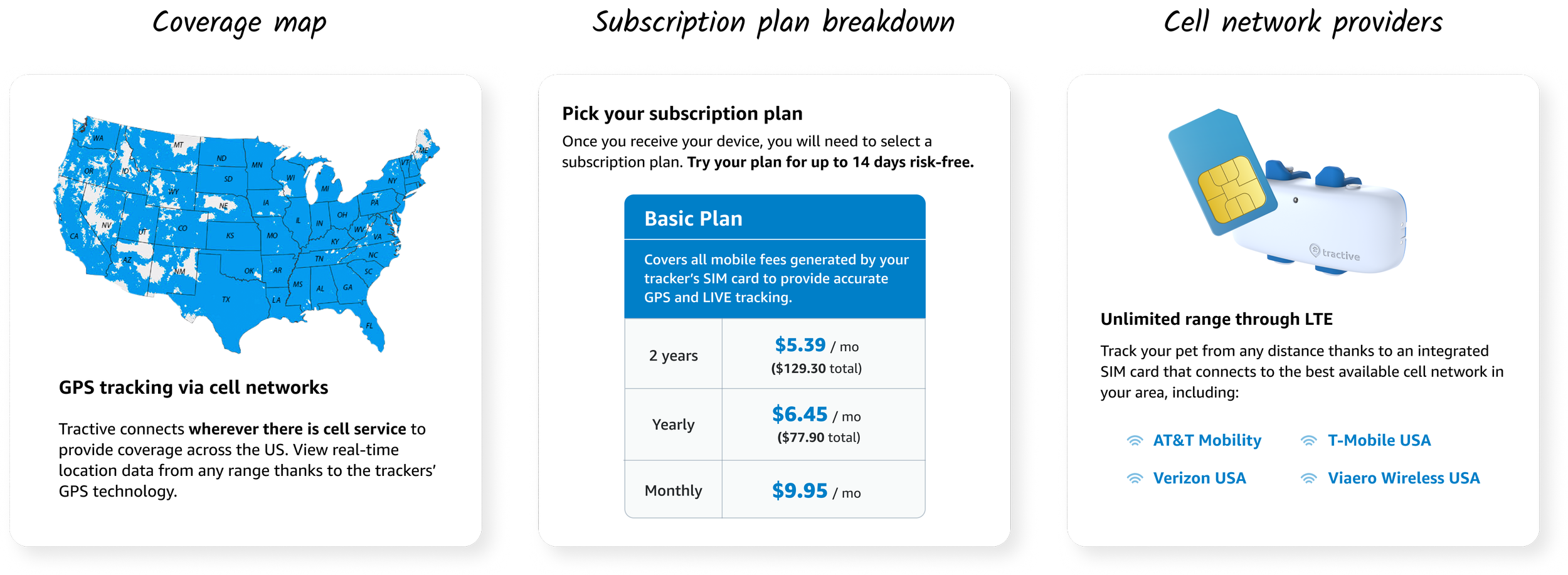 Based on the results from this early concept test, I crafted an initial version of the A+ content that highlighted key product features alongside information about coverage, range, network providers, and subscription fees. Early on, I made a call to use Amazon’s widget templates rather than solely relying on image-based content — a non-negligible portion of our customers made their purchase from a mobile device, and images would be unreadable on mobile screen dimensions, as well as completely inaccessible to screen readers.